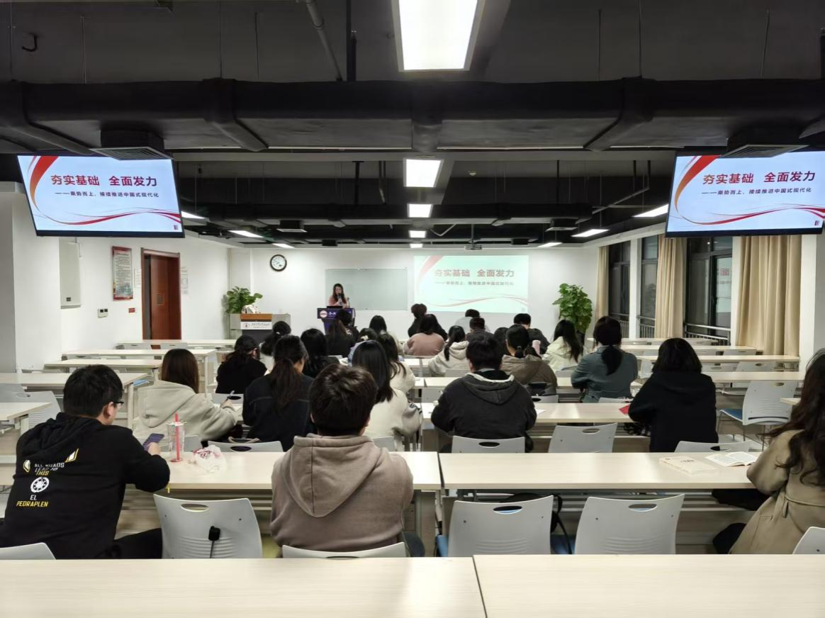 马克思主义学院戴燕老师应邀作专题授课。首场以“反‘独’促统 共创伟业”为主题,深刻阐述祖国统一是民族复兴的必然要求,指出“台独”分裂行径违背历史潮流,系统解读新时代党解决台湾问题的总体方略。第二场围绕“夯实基础 全面发力——乘势而上、接续推进中国式现代化”展开,聚焦“十五五”时期,深入分析习近平新时代中国特色社会主义思想的战略引领作用,阐释以高质量发展推动基本实现社会主义现代化取得决定性进展的实践路径。