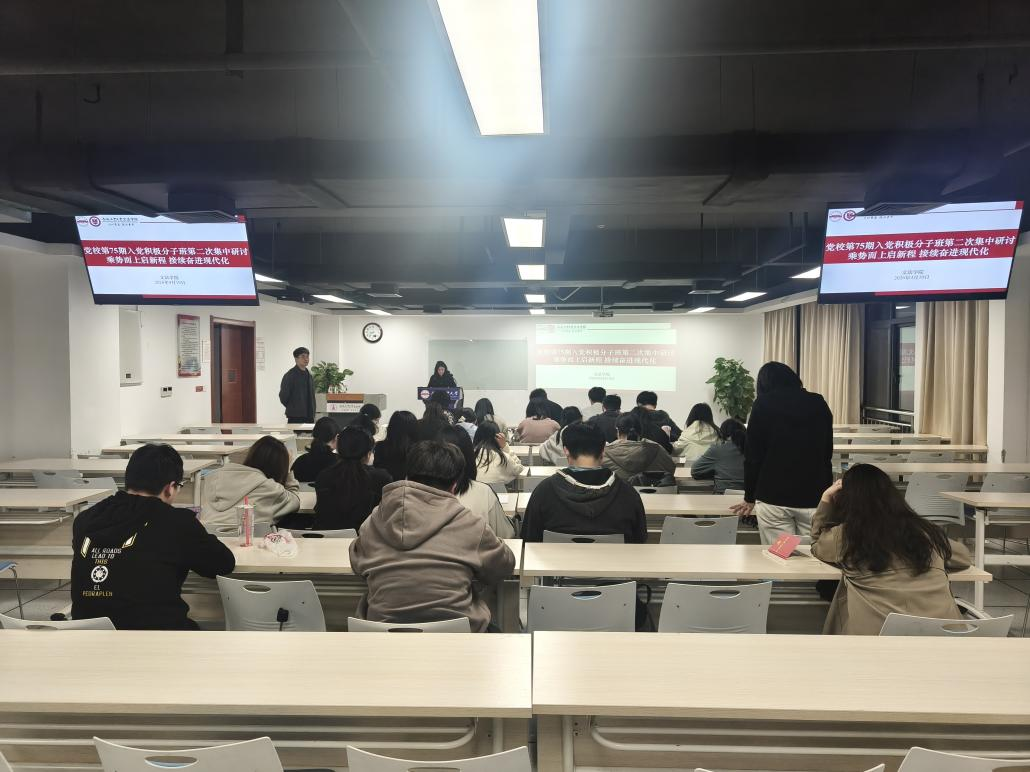 4月10日,学院分党校第75期入党积极分子班以“乘势而上启新程,接续奋进现代化”为主题,开展第二次理论研讨。全体学员结合前期党课学习,围绕2026年全国两会部署与中国式现代化的青年使命深入交流。