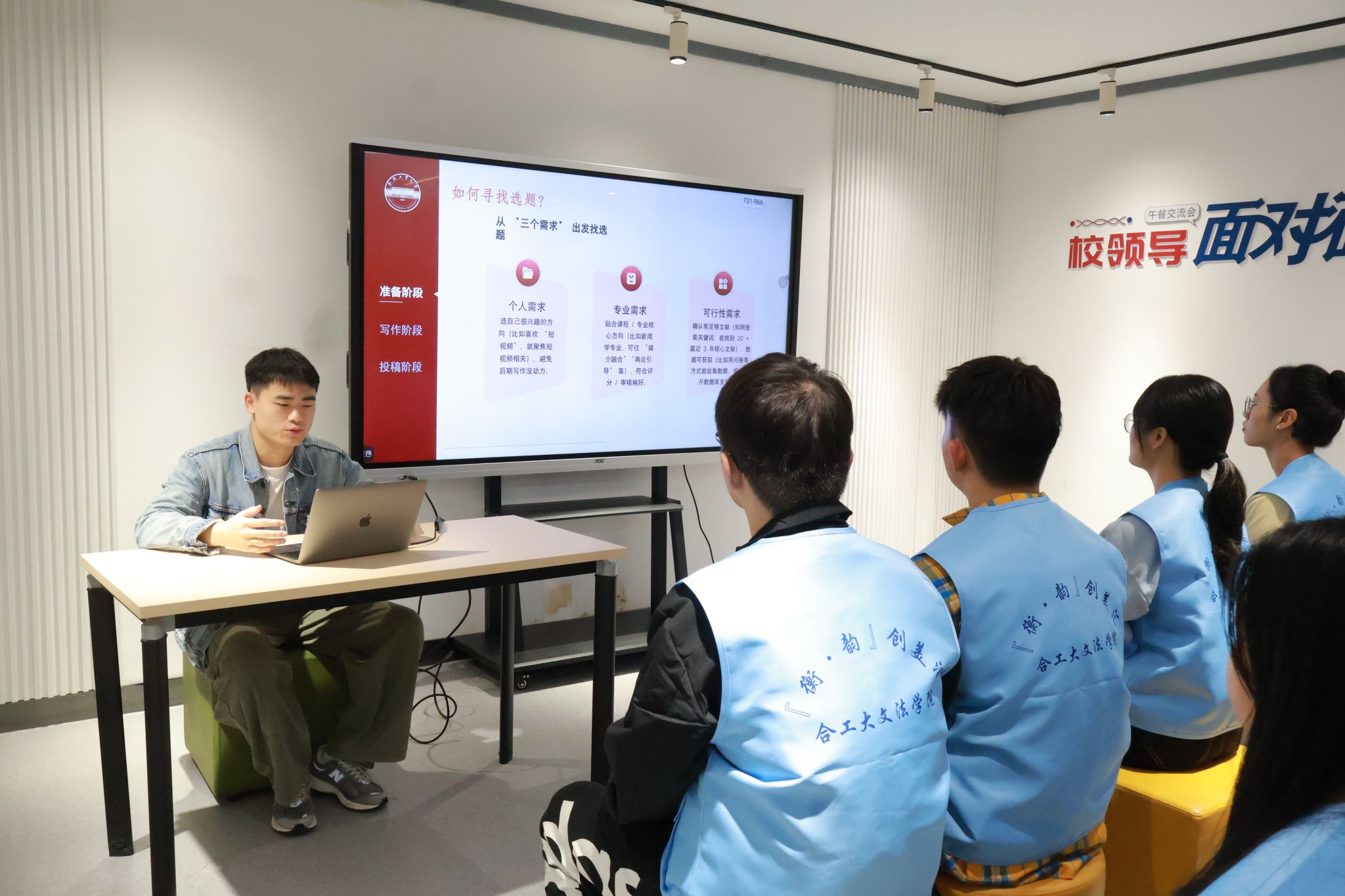 为帮助同学们更好地适应学习生活,明晰发展规划,10月14日晚,文法学院在本科生公寓七号楼二楼学生社区举办了“美育”系列活动第一期“研途美”经验分享会。活动邀请了2025年国家奖学金获得者严萍、林松两位同学进行分享,文法学院研究生参与活动。