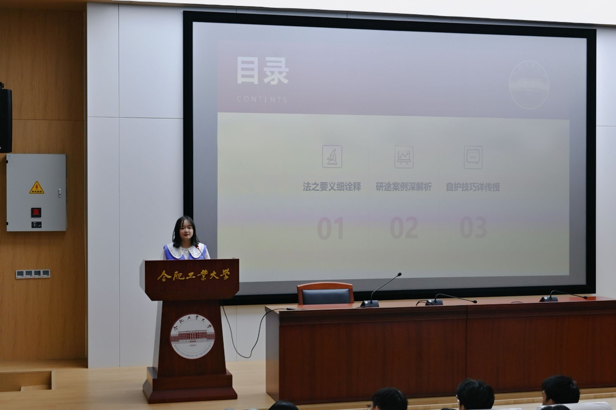 为提升大学生的法治观念和法律素养,10月15日下午三点,文法学院“衡声·普法行”宣讲团在屯溪路校区工程管理与智能制造研究中心第一报告厅举行了第23期普法宣讲活动。本次活动由宣讲团成员吕晓萌主讲,文法学院与管理学院、土木与水利工程学院研究生共同参与。