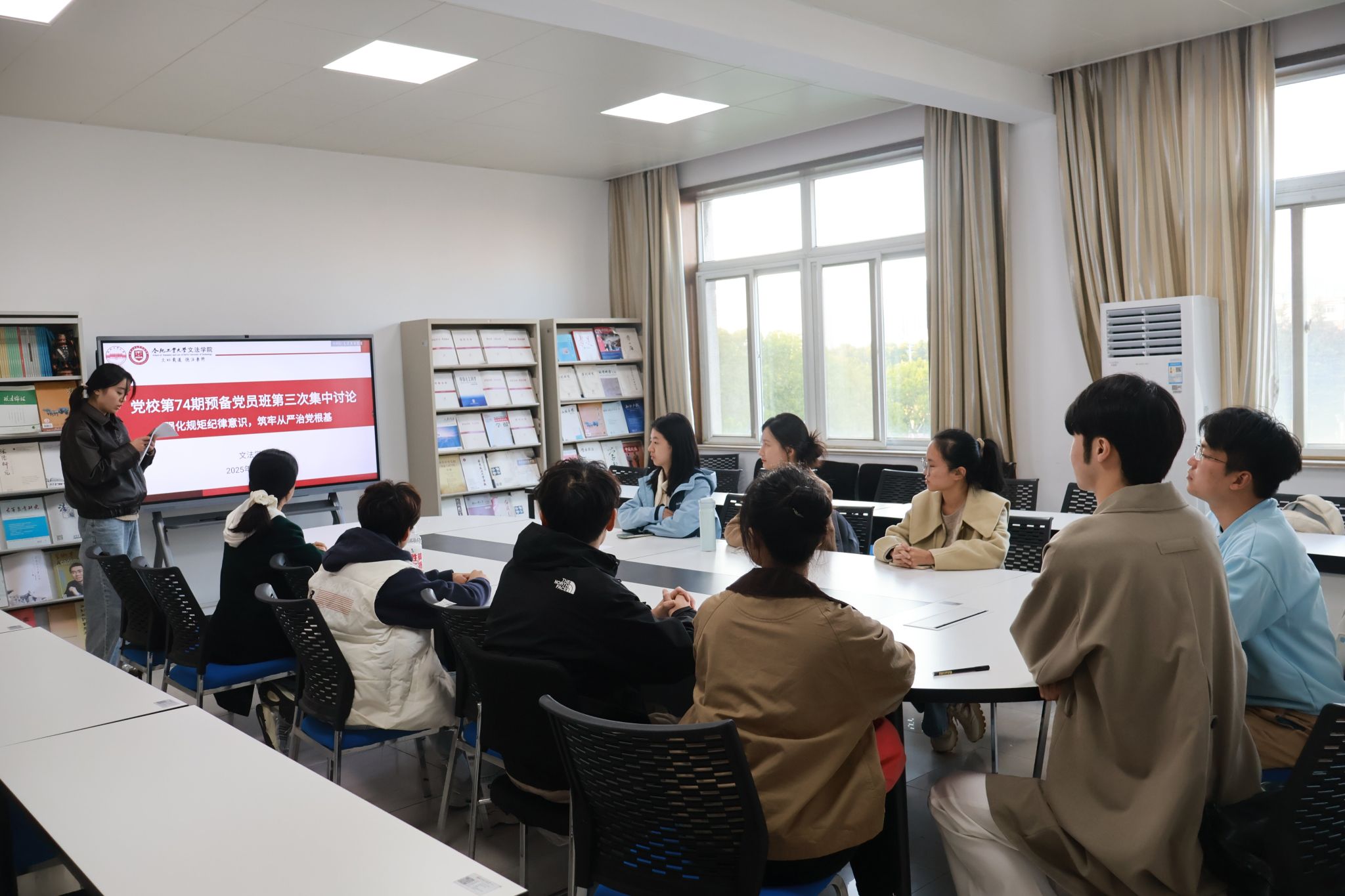 为进一步增强学生党员的纪律意识和规矩意识,10月24日下午,学院党校第74期预备党员班在学院楼410会议室组织开展第三次集中学习研讨,围绕“强化规矩纪律意识,筑牢从严治党根基”主题进行深入交流。