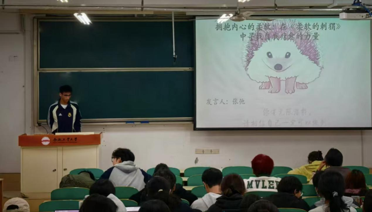 分享会上,王传北阐明活动初衷与流程后,分享环节正式拉开帷幕。同学们结合自身学习生活经历,畅聊《活下去的理由》《柔软的刺猬》等心理读物书中触动心灵的观点与实用方法:有人分享书籍如何助力自己缓解学业压力、化解人际困扰,有人讲述阅读怎样帮自己走出情绪低谷、重拾前行信心。现场交流真挚坦诚,大家认真倾听、彼此共情,每一次分享都是一场深刻的自我觉察,每一次交流都凝聚着温暖的心灵共鸣。