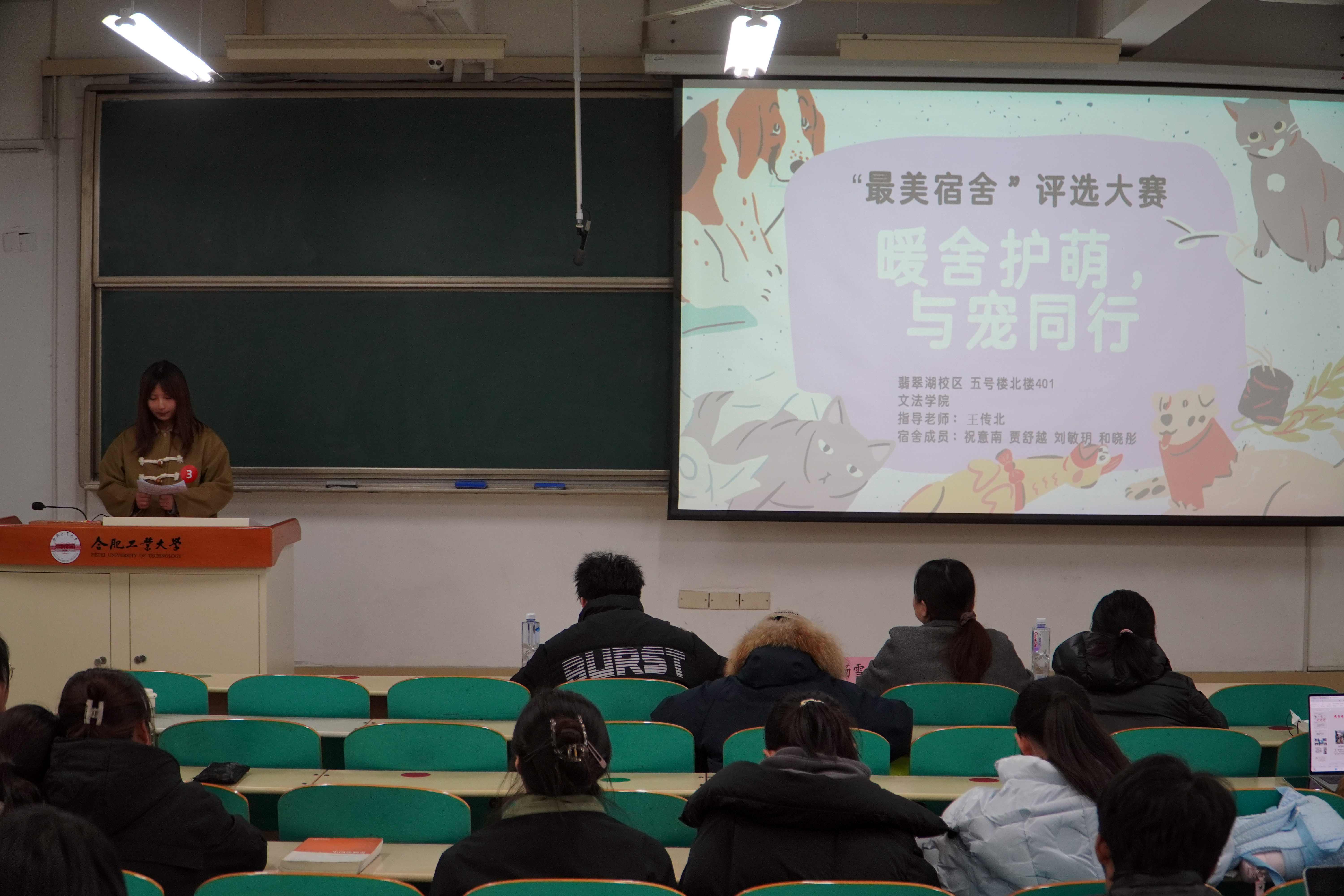 11月27日,学院于翠五教404教室举办2025年“八秩芳华,青春‘寓’见”寝室文化设计大赛.比赛特邀班主任杨雪洁、辅导员王传北及学生骨干代表组成评审团,学院2025级全体本科生参与本次活动。