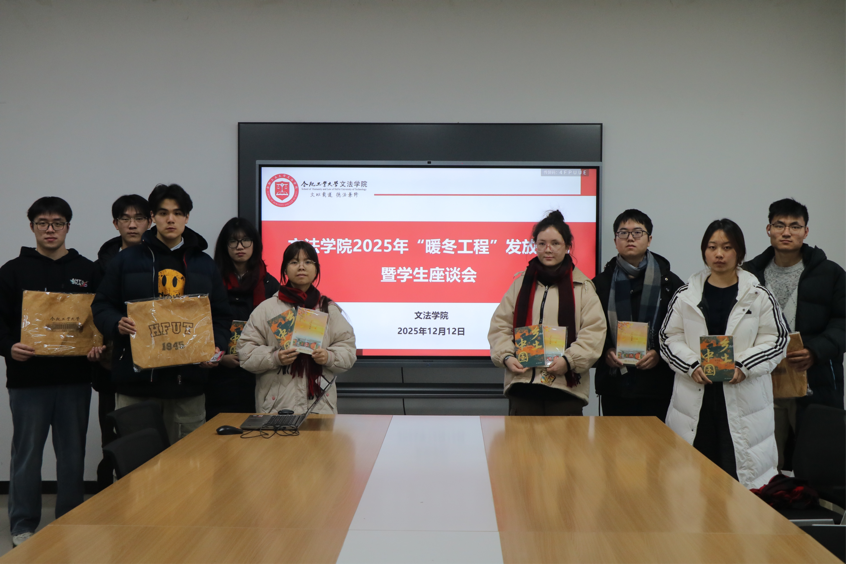 为深入落实国家学生资助政策,扎实推进家庭经济困难学生精准帮扶工作,切实把温暖与关怀送到学子身边,12月12日下午,文法学院在学院310会议室开展2025年“暖冬工程·暖意融法”御寒物资发放仪式,本科生辅导员宋燕老师、全体受助学生代表共同参与。