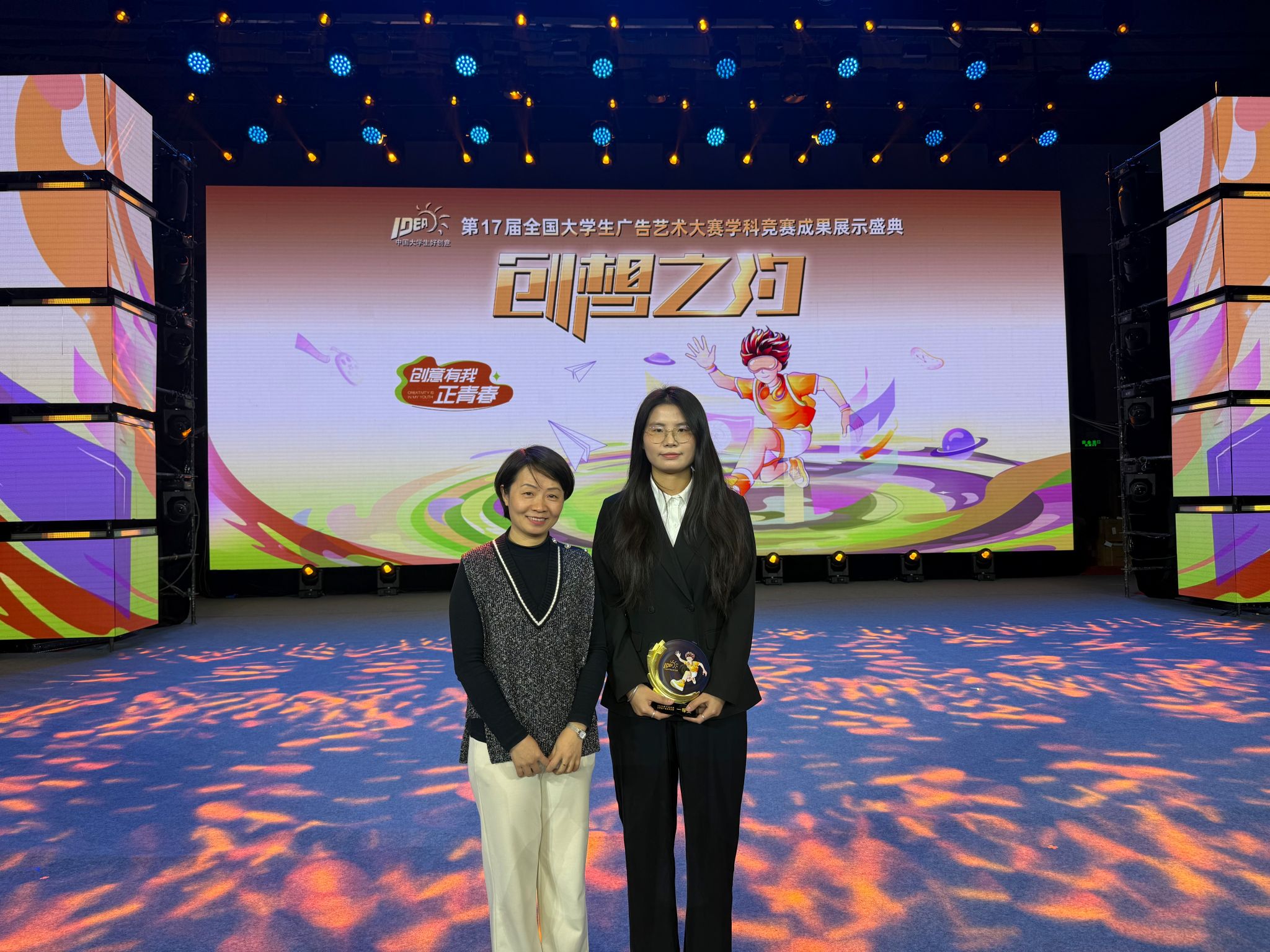 2025年12月6至7日,第17届全国大学生广告艺术大赛(大广赛)学科竞赛成果展示暨大广赛华彩20周年颁奖盛典活动在北京全国政协礼堂隆重举行。我校学子在17届大广赛全国总评审中荣获一等奖1项(文法学院学生李梦、张晋瑶,指导老师姚宁)、三等奖1项(马克思主义学院学生彭佳蕾,指导老师张翮)、优秀奖14项。中国新闻文化促进会会长、人民日报社原副总编张首映,中国高等教育学会副会长、教育部高教司原司长张大良,教育部高教司原巡视员、高等教育教学评估中心原主任刘凤泰,中国教育报刊社原社长李曜升等出席并为获奖单位、师生代表颁奖。来自全国百余所高校的近千名师生参加活动。