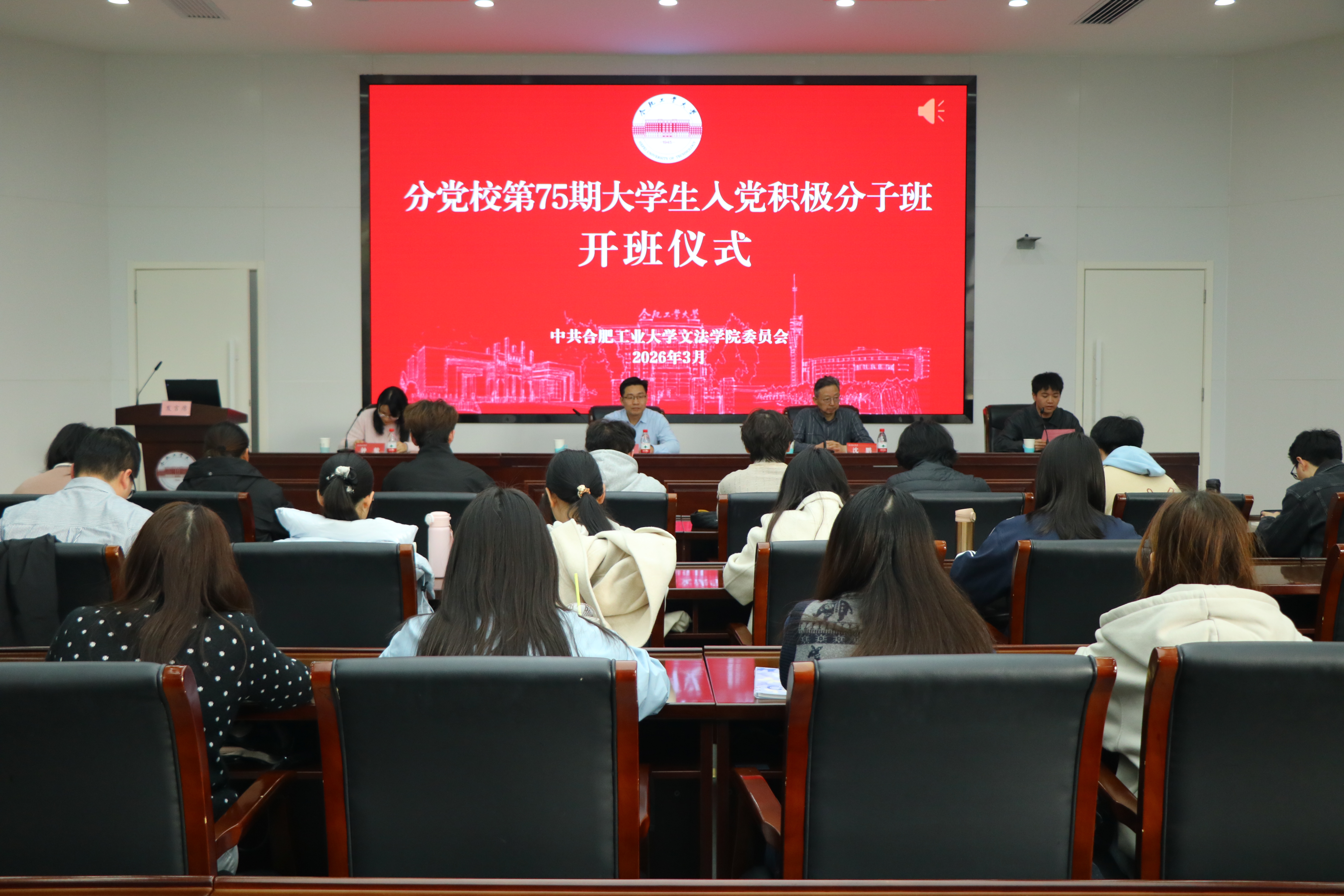 3月25日下午,文法学院分党校第75期大学生入党积极分子培训班开班典礼在屯溪路校区学术会议中心三楼报告厅举行,学院相关负责同志及全体积极分子班学员参加。